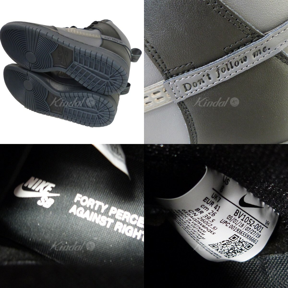 FPAR×NIKE/フォーティーパーセンツアゲインストライツ ナイキ 「NIKE SB DUNK HIGH PRO PRMQS」ハイカットスニーカー ブラック×ダークグレー サイズ:26cm Gender type Condition 商品詳細 カラーブラック×ダークグレー 表記サイズ26cm 詳細サイズ全高:約15cmアウトソール:約29cm甲の横幅:約10cm適応サイズ:約26cm 製造番号BV1052-001 付属品箱 商品詳細フォーティーパーセンツアゲインストライツ ナイキの「NIKE SB DUNK HIGH PRO PRMQS」ハイカットスニーカーです。