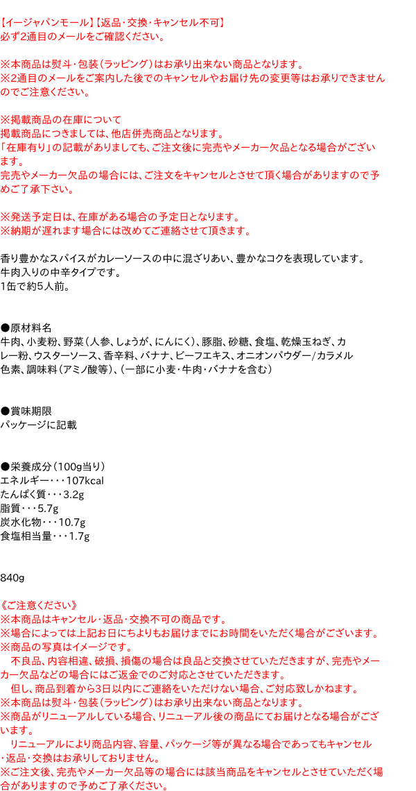 [関連キーワード:食品 缶詰 保存食 カレー 牛肉 辛い スパイシー ストック 長期保存 業務用]まとめ買いはコチラ(激安ケース) >>【イージャパンショッピングモール】内のみのお買い物は、送料一律でどれだけ買っても同梱する事が出来ます。