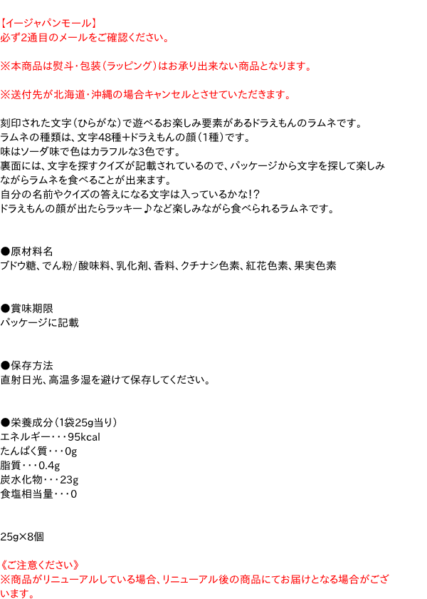 [関連キーワード:お菓子 おやつ ラムネ 清涼菓子 ひらがな こども キャラクター どらえもん]【イージャパンショッピングモール】内のみのお買い物は、送料一律でどれだけ買っても同梱する事が出来ます。