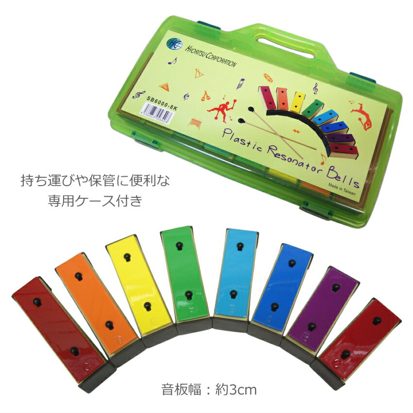 【仕様】 ■8音(ど・れ・み・ふぁ・そ・ら・し・ど) ■ケースサイズ:横:約31cm×縦:約19cm(持ち手含む)×高さ:5cm 音板の幅:約3cm ■付属品:専用ばち(1組2本)、ケース