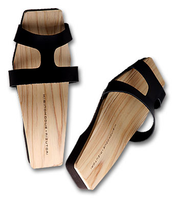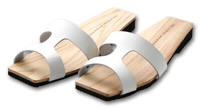 ひのき100%の優しい肌触りと、新鮮なスタイルの本革のアッパー。