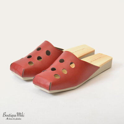 ひびのこづえ×水鳥 ひのきのはきもの PA-01 [パンチング・丸/赤] m+d 静岡産ひのき ルームシューズ オフィス 男女兼用 日本製 メンズ レディース 水鳥工業 和装 下駄