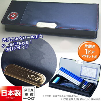 商品名 1ドア軽量筆入 迷走ネイビー 品番 SF014NB ネイビー 紺 サイズ タテ238×ヨコ91×厚35mm 重さ:約)162g 仕様 片面開き1ドアタイプ マグネット式筆箱。